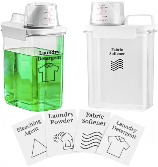 ★[REUSABLE VERSATILE CONTAINER] – Use this for your liquid laundry detergent, powder laundry detergent, liquid fabric softeners, scent beads, or bleach. With four sticker labels to choose from: fabric softener, bleaching agent, laundry detergent and laundry powder. The choice is yours!