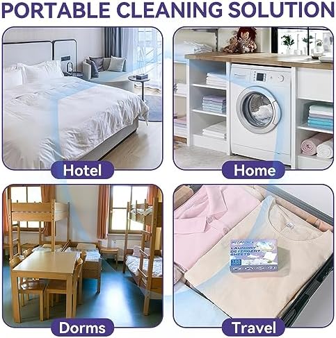 【Effortless Efficiency】Compact packaging of washer sheets detergent takes up minimal space, making them perfect for travel without adding luggage weight. Laundry detergent sheets work for both machine and hand washing, quickly dissolve in hot or cold water, a must-have laundry sheets for travel. No messy, only joyful memories with family.