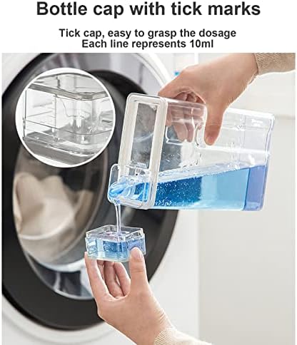 Material: The detergent container is made of all new durable and strong ABS plastic. Clear laundry detergent dispenser is easy to see the liquid inside, conveient