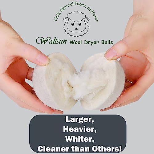 Waltsun wool balls are made of 100% premium New Zealand wool. The upgraded version is larger, heavier, whiter and cleaner than others!