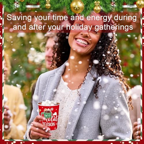 Christmas Themes: the Christmas disposable cups adopt Christmas theme design, with Christmas holiday classic colors, to add Christmas joy to your life, good for containing hot chocolate, hot cocoa, tea, and more