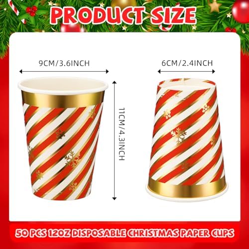 Vibrant Festive Design: these disposable Christmas coffee cups feature a charming and classic Christmas candy cane striped design with gold foil outlines and scattered snowflakes, with a cheerful blend of red, white, and gold colors, ideal to add an extra festive touch to your holiday celebrations