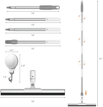 【Quality Rubber Material Blade】 The flexible 14-inch rubber blade of the floor squeegee has a soft edge that effectively removes water over glass, tile, wood, metal, and more.Unlike regular mops that require multiple wipes.