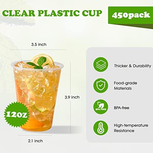 Lilymicky [450 Pack] 12oz Clear Plastic Cups, Cold Party Drinking Cups, Disposable Plastic Cups for Parties, Picnic, BBQ, Travel, & Events