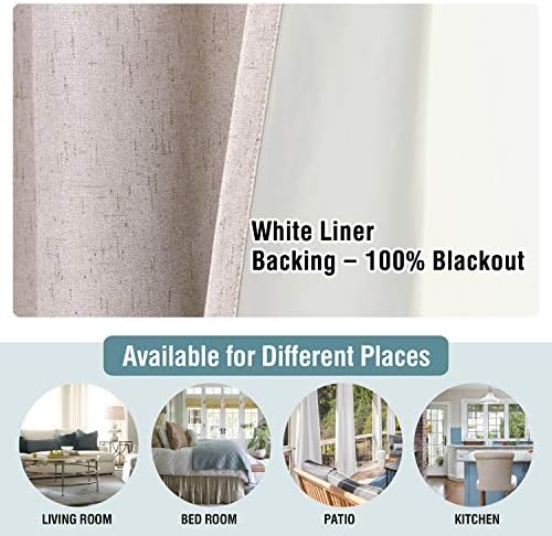 100% BLACKOUT: These elegant textured linen like curtains have white lining on backing, definitely can block out 100% bright sunlight and UV ray, turn day into night, enjoy your sweet sleeping and protect your furniture from color fading, providing privacy in your place