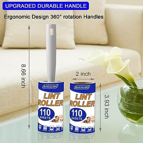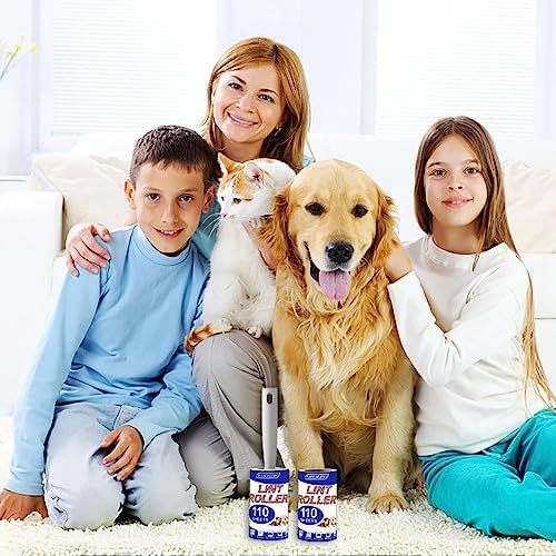 【Extra Sticky & Easy to Use】Our lint rollers for pet hair extra sticky are equipped with ultra-sticky adhesive sheets that effortlessly pick up lint, pet hair, dust, dirt, fur, fuzz, and other particles from a variety of surfaces, including clothing, sofa, furniture, car and carpets etc., Don’t worry about the residue! Achieve a pristine appearance with ease, keep your home sleeking and cleaning!