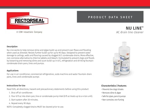 Nu Line works to help remove slime and algae build-up and prevent over-flows and flooding when used as directed. Resists further build-up for up to 90 days. Designed to prevent water damage to ceilings, walls and flooring caused by clogged A/C condensate drains. More effective, non-corrosive alternative to chlorine tablets and bleach. Formulated to prevent clogs and floods by loosening and removing slime and scum build-up in A/C, refrigeration and drinking fountain condensate drain pans, lines and pumps.