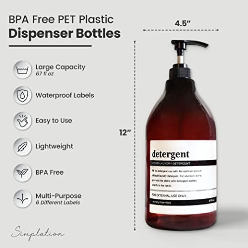 SUPERIOR QUALITY & LARGE CAPACITY: Our premium quality amber bottle is thicker than other cheaply made bottles; it’s highly resistant to breakage and free of harmful chemicals. In addition, there is no need to refill your laundry detergent frequently as each laundry soap container holds 67 oz. of liquid.