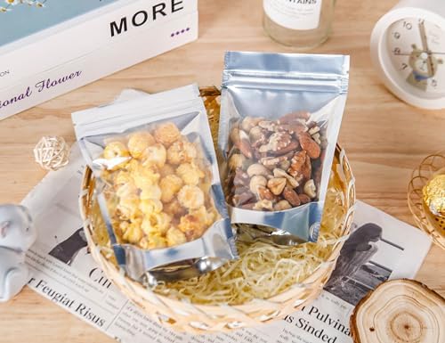 ❤Unique design:Our mylar bags for food storage can stay open by itself making it effortless to fill.Mylar Food storage bags use resealable self adhesive sealing strip.The zipper design holds securely and you can reuse it multiple times.