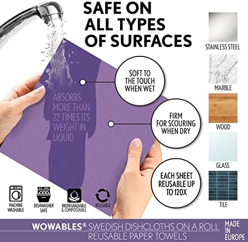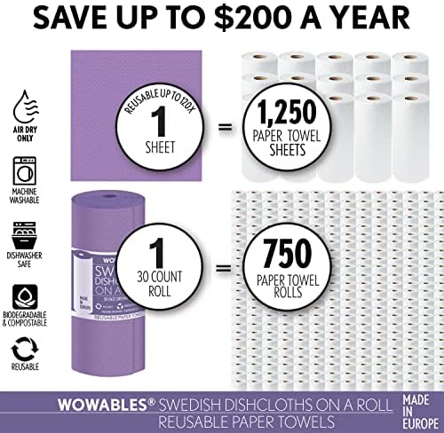 VERSATILE– Wowables are much more flexible than all other swedish dish cloths making it much easier to get into the harder to reach areas. Great for spills, windows, dishes, cups, mugs, silverware, marble, wood, stainless steel & sinks. Pet Friendly – works great for cleaning off pets paws. Fits standard paper towel holders. Our technology allows for ultra-fast drying