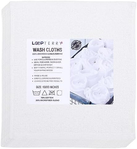 VALUE PACK: Loop Terry’s 13×13” bar mop cleaning towels are sold as a retail pack of 24 and a bulk case of 60. Cut down on disposable paper towels and use our eco-friendly naturally biodegradable multi use terry towels.