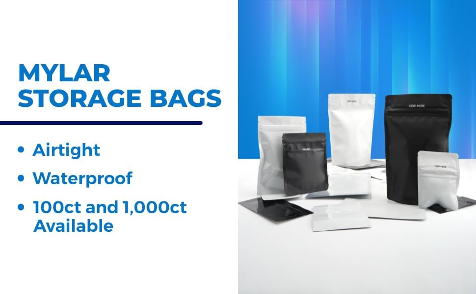 These resealable bags for packaging by Loud Lock are engineered to keep odors inside the bag while guarding against dirt, water, and dust out. Every resealable storage bag is designed to lock in freshness for an easy and effective long-term storage solution. Each mylar bag has an airtight ziplock that locks your bag tightly when zipped. Although airtight when zipped, these durable mylar ziplock bags are made to be opened and resealed as you please!