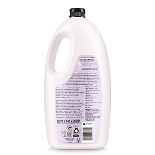 Here’s the glorious ending to a wonderful dinner party. This dishwasher detergent gel is packed with plant based cleansers to effectively remove even stuck-on food residues and leave your dishes squeaky-clean. Infused with the scent of ethically sourced French Lavender and blended with Moroccan Argan Oil, this detergent gives your dishes the gentle bubble bath they deserve. We’ve started our journey towards more eco-friendly cleaning products by loading our products with ingredients that come from renewable sources and packing them in recycled and recyclable bottles. Our goal is a carbon footprint so small, it’s like we weren’t even here. So every time you choose Love Home and Planet, you join our mission for a cleaner planet: We support environmental change-makers. Our voluntary carbon tax supports recycling initiatives. HOW TO USE: LOAD DISHWASHER – Make sure items are dishwasher safe. For best results, load items with soiled surfaces facing the center and keep taller items away from the center. Silver, aluminum and stainless steel should be washed in separate loads to avoid discoloration. No need to pre-rinse dishes before putting them in the dishwasher – scrape off food and empty liquids, the dishwasher will do the rest. If you rinse dishes first, use cold water. ADD DETERGENT – Fill main dispenser cup according to machine directions and close dispenser door. Septic safe.