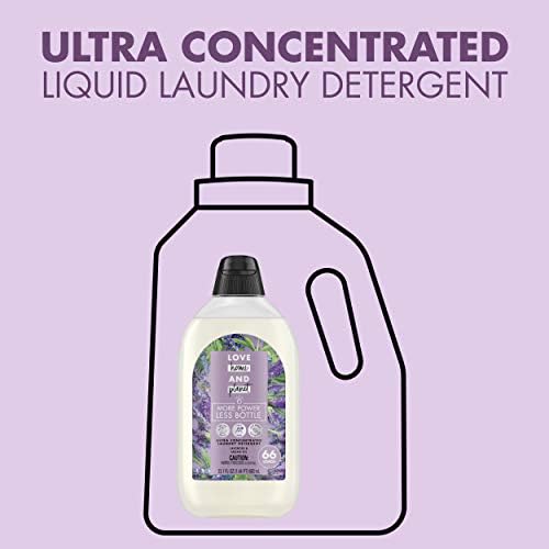 This ultra concentrated laundry detergent is little and lasting! It has more cleaning power in each drop and 50% less plastic than our regular 50oz Laundry Detergent – that’s our #smallactoflove for the planet. And it’s so lightweight that it makes the perfect companion for a trip to the laundromat. This detergent is made with plant based cleansers and is so smart, it detects the type of stain it encounters; whether it’s avocado or make-up, it cleanses your clothes effectively yet gently. From yoga pants to that marathon tee, it helps to retain their vibrancy and color. Blended with luxurious hand-crushed Moroccan Argan Oil, and infused with notes of calming heirloom French Lavender, this detergent leaves your clothes with a serene kiss of nature that lasts. We’ve started our journey by loading our products with ingredients that come from renewable sources and are effective even in cold water so we can save a little energy together, and by packing them in recycled & recyclable bottles. Each of our delicate scents is infused with a pure, ethically sourced, essential oil or absolute. Our goal is a carbon footprint so small, it’s like we weren’t even here. So every time you choose Love Home and Planet, you join our mission for a cleaner planet. How to use: Don’t forget to follow the care label instructions on clothing. See back of package for specific instructions. 1 FIRM squeeze for medium loads 2 FIRM squeezes for heavy loads Pop the cap and flip upside down. Squeeze firmly, (really, squeeze FIRMLY, trust us!) into dispenser or washer until liquid stops: our Easy Dose cap with Auto Dose Technology measures for you. Flip and store upright. 66 loads as measured to medium dose