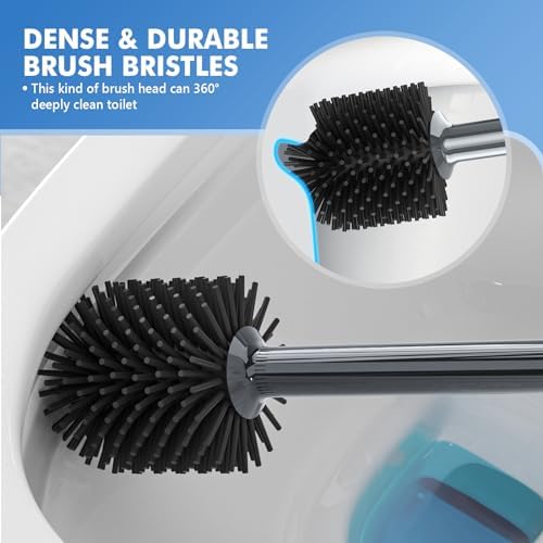 🚽【SILICONE BRUSH】 Crafted out of silicone rather than nylon, soft yet sturdy, features non-scratch to your toilet glaze. Built with upgrade TPR material, not easy to stick hairs or wear out. With this toilet brush, you could easily clean soft dirty stains. If you wanna clean hard stains, we recommend to buy our store’s traditional bristles toilet brush.