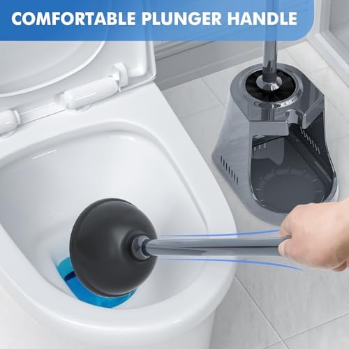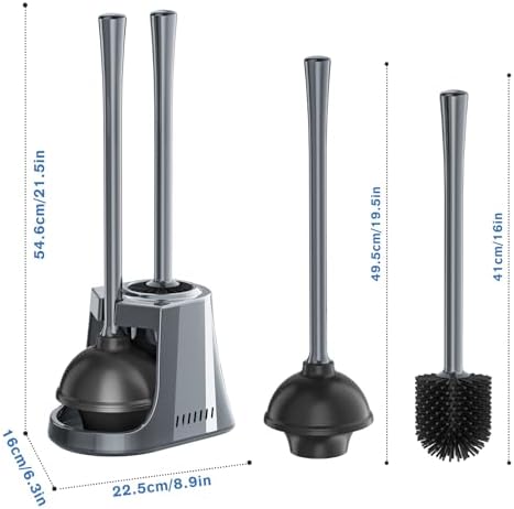 🚽【Ergonomic Handle】This ergonomic handle designed for a comfortable grip makes your cleaning job easy. We promise that we’ll replace the brush and plunger set or provide you with a fund if not fully satisfied.