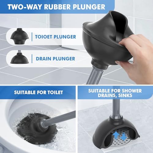 🚽【Convenient Plunger】This toilet plunger made of durable rubber creates a tight seal around the drain and provides plunging power, which can be a handy tool to unclog the toilet bowls, shower drains, and sinks at any time.
