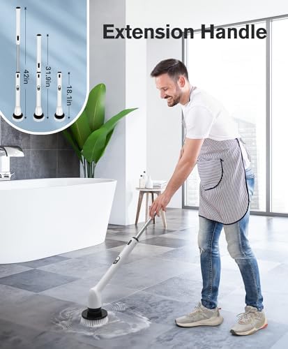 No more bending and kneeling, say bye to traditional cleaning.Whether it’s shower head or shower door, ceilings, or floor, this electric spin scrubber specially designed with an extension rod can switch between 18 and 42 in.