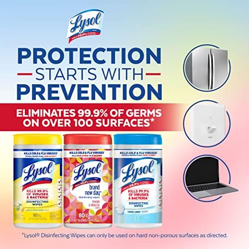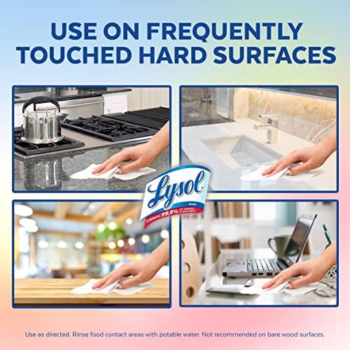 Lysol Disinfecting Wipes can be used as a convenient way to clean and disinfect your household surfaces. Each premoistened disposable wipe kills germs (on surfaces when used as directed) wherever you use it. No bottles, no sponges, no mess. Kills Salmonella Enterica (Salmonella), Influenza A Virus (H1N1), Herpes Simplex Virus Type 1 and Respiratory Syncytial Virus on hard, nonporous surfaces in 4 minutes. Disinfects including: Escherichia coli, Staphylococcus aureus (Staph), Influenza H7N9 and Streptococcus Pyogenes (Strep) among others. Kills 99.9% of Viruses and Bacteria when used as directed. Removes allergens (Pet Dander, Dust Mite Debris and Pollen Particles). Effective disinfecting has never been easier. Lysol Disinfecting Wipes are also safe to use on your gadgets like Smartphones, Tablets & Remote Controls.