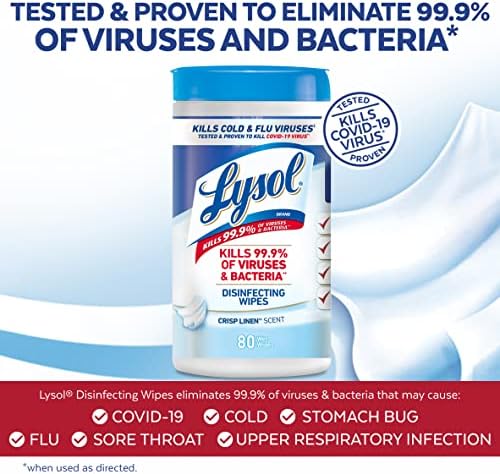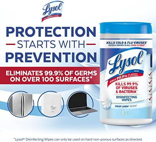 Lysol Disinfecting Wipes can be used as a convenient way to clean and disinfect your household surfaces. Each premoistened disposable wipe kills bugs (on surfaces when used as directed) wherever you use it. No bottles, no sponges, no mess. Kills Salmonella Enterica (Salmonella), Influenza A Microorganism (H1N1), Herpes Simplex Microorganism Type 1 and Respiratory Syncytial Microorganism on hard, nonporous surfaces in 4 minutes. Disinfects including: Escherichia coli, Staphylococcus aureus (Staph), Influenza H7N9 and Streptococcus Pyogenes (Strep) among others. Kills 99.9% of Microorganisms and Bacillus when used as directed. Removes irritants (Pet Dander, Debris and Pollen Particles). Effective disinfecting has never been easier. Lysol Disinfecting Wipes are also safe to use on your gadgets like Smartphones, Tablets & Remote Controls.
