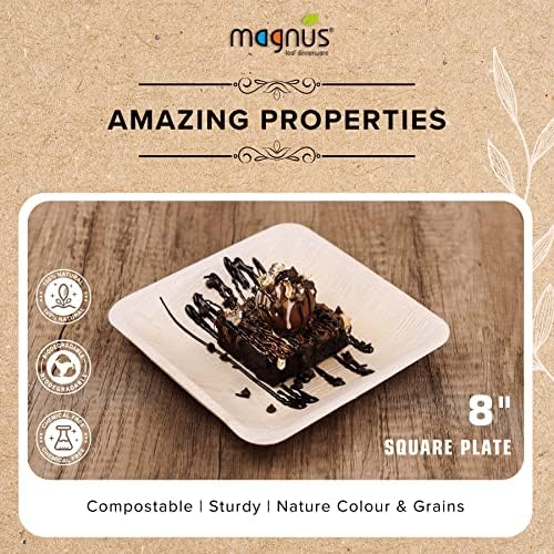COMPLETE TABLEWARE SET: Visit our Amazon store to explore our complete range of bamboo plates disposable cutlery. We offer disposable plates bulk packs of 25 and 50 units. We offer 6″ cake plates for wedding reception, disposable plates with compartment, 7″ disposable dessert plates, 8″ appetizer plates disposable compostable cutlery and much more.