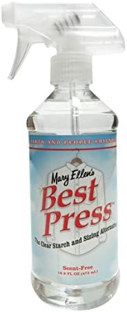 BestPress16oz NoScent Mary Ellens Best Press The non-aerosol bottle is environmentally-friendly and you can see how much is left too! No flaking clogging or white residue on dark fabrics. A special stain shield protects fabrics and it helps resist wrinkles! Best of all it’s more effective than any starch you’ve ever used.