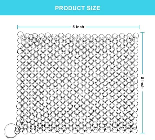 【DISHWASHER SAFE AND DURABLE CLENER】Unlike the normal scouring pad, the chainmail scrubber is easy to clean and dry by its well-designed big corner hanging ring. It helps the hold while your cleaning and then just hang the cast iron cleaning scrubber to air dry.