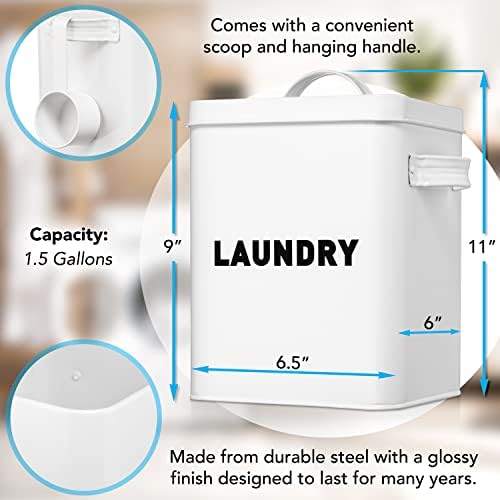 DURABLE ALL METAL CONSTRUCTION – featuring a clean white powder-coating with big bold LAUNDRY lettering. Built to last with thick solid metal, just like the vintage porcelain enamel tin boxes from years ago.