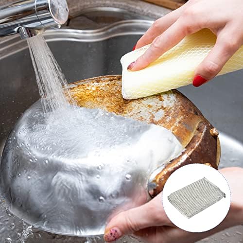[2]: SPECIFICATION : Product Name: Scouring Pad; Color: Silver Tone; Material: Sponge, Polyester; Total Size: 12.5x 8.5 x 1.6cm/5″ x 3.3″ x 0.63″(L*W*T)