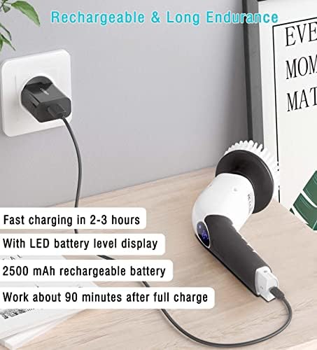 【Make Cleaning Easier】- With 3 speed options, the max spinning power of this electric scrubber is 420 RPM, which produces a powerful strength to help to clean stains and dirty spots. Take care of your hands and your home.