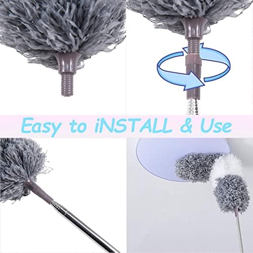 【Stainless Steel Extendable Long Pole】Cleaning will be 10 TIMES EASIER with our telescopic duster. Our extendable duster has the ability to extend up to a whopping 100 inches, which can clean everywhere you want at your house,no need ladder to climb anymore.and could be shortened to 30 inches when needed for storage.