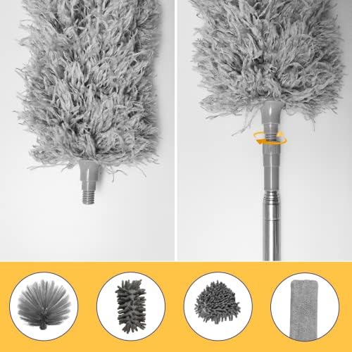 ☛Bendable and washable dust removal head:Removable microfiber cleaning head, easy to maintain, remove the cleaning head after use, wash the cleaning head with warm water, hang it in a dry and ventilated place to dry. Reusable, save your money.
