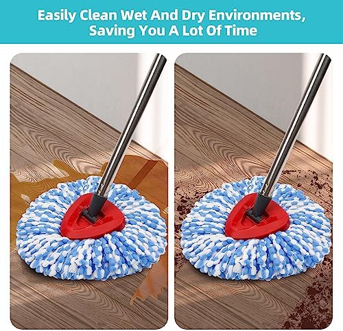 Spin mop replacement head is made of 100% microfiber, the material is soft and clean, easy to clean dirt and dust, will not scratch the floor, better cleaning results.These mop replacement heads are made of microfiber material for higher density and better quality. It is super absorbent and brings you a streak-free floor.