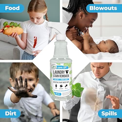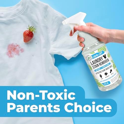 Mighty Mint Laundry Stain Remover is a potent, plant-based formula made to gently lift tough stains from fabric in the wash. This efficient stain eliminator works on a wide variety of stains and is a Parent’s secret tool for getting rid of everyday messes on kids cloths. It is effective on colorfast fabrics, it works quickly, and is simple to use. Just spray the solution directly onto the stain spot, rub gently and wash normally with your regular detergent. Specially created for safe use on cloths worn by kids and pets when used as directed. Works for: Food, Juice, Urine, Red Wine, Berries, Spit up, Poop, Coffee, Sauce, Dirt, Blood, Grass, and more!