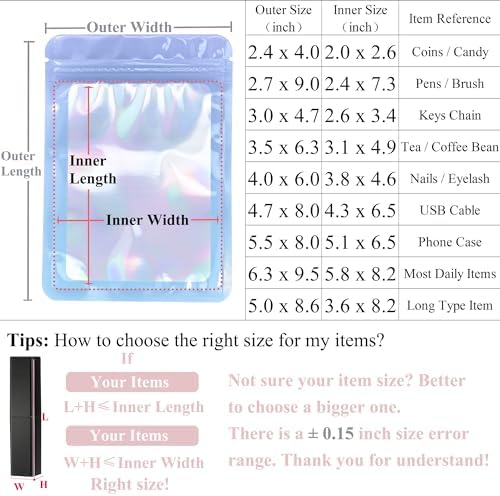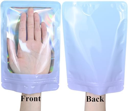 Attractive Holographic Rainbow Gloss – Metallic film achieves a rainbow metallic effect by breaking natural light into a gradual seven-color primary light that illuminates the items in the bag. Transparent window design makes your treasures clear and shiny!