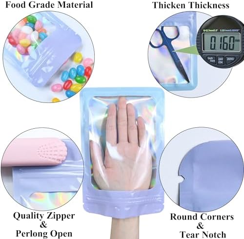 These reseable bags use Thicken Thickness (0.16mm, better than normal 0.12-0.14mm in the market), will provides better Puncture Resistance and heat seal perfomance. Avoide embarrassing situations like items leakage, or too thin material causing Melting during heat sealing