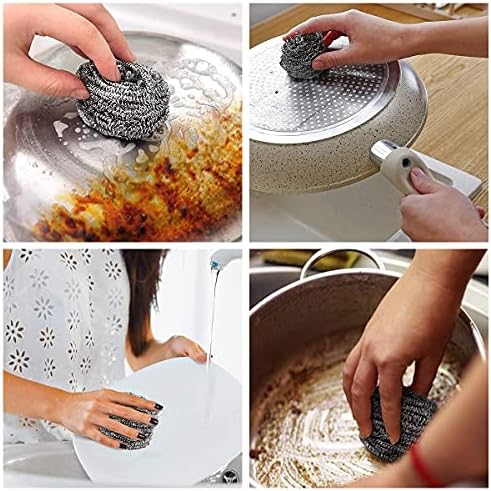 Product Description: made of stainless steel, detergent tools, suitable for kitchen tableware, strong cleaning of the oven, high quality and durable Spiral mesh design, slim and compact oversized design, easy to clean heavy dirt without hurting hands Product Specifications:Size: 30g Color: silverMaterial: stainless steel Package includes: 6pcs stainless steel scourers