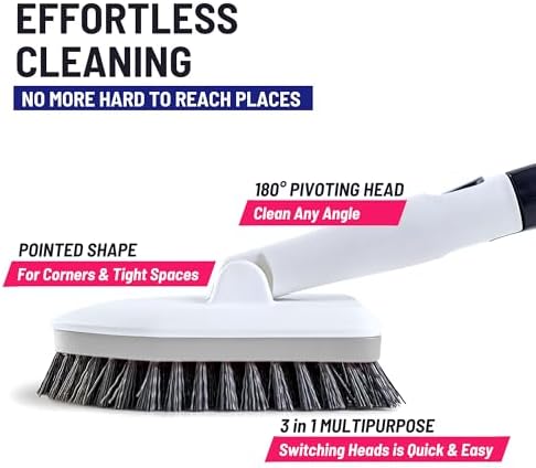 EFFORTLESS BY DESIGN — The unique design and 180-degree pivot of the tub tile scrubber brush allows for effortless access to all corners, narrow spaces and hard-to-reach places. The ergonomic handle is designed with a soft, padded and non-slip grip that’s easy to control when wet, reducing hand fatigue during cleaning