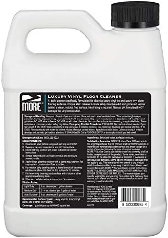 CLEAN INGREDIENTS – Made with just a handful of plant-based ingredients, MORE Luxury Vinyl Floor Cleaner is light and unscented. Our water-based formula has less impact on indoor air quality so it can be used worry-free on floors throughout your home or office space.