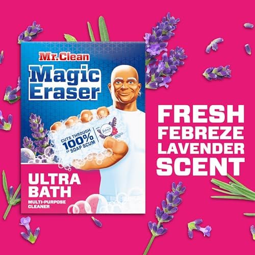 Mr. Clean Magic Eraser Ultra Bath is tailor-made for all the messes your bathroom can throw at it. No sponges or additional cleaning products needed. Just wet, squeeze, and erase bathroom messes with ease—even shaving cream, toothpaste, and makeup. This powerful bathroom cleaner cuts through soap scum on the first swipe, so you can spend less time scrubbing and more time tubbing. It combines Magic Eraser power with active foaming cleansers, making tough bathroom messes in your tub, sink, shower, bathroom floor, and more no big deal. And you’ll love the fresh Lavender Febreze scent it leaves behind. Add Mr. Clean Magic Eraser Ultra Bath to your arsenal of cleaning supplies today!