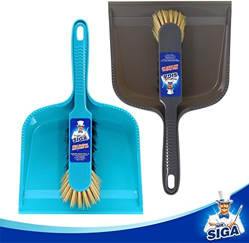 MR. SIGA Dustpan and brush set, pack of 2 set, Blue & Grey. Plastic dustpan and brush set, high quality PET fibers, great for every day cleaning. Brush with hanging hole in handle snaps into dust pan for storage. High wall design to keep debris in, Soft rubber edge creates a flat surface and helps hold more dust and dirt. Enjoy Cleaning, MR. SIGA providing high quality cleaning products for everyone, to make cleaning becomes effortless & more comfortable, our Mission is to “Let the Housework easier, Make the World Cleaner”.