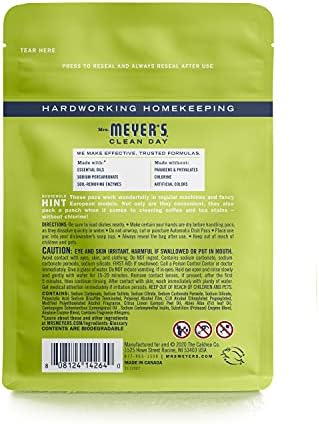 Mrs. Meyer’s Clean Day Automatic Dish Pacs feature hardworking detergent cleaning agents, while also providing a special, singular scent for your home. Lemon Verbena has a light, refreshingly mild citrus scent. This tender herb blossoms in early summer and smells bright and new through and through. Each dishwasher pod loads easily in the dishwasher’s soap cup and is safe for use in all machines. Clean coffee and tea stains from cups without phosphates or chlorine. Convenient dishwasher packets leave dishes sparkling clean. Available in other garden-inspired scents and biodegradable formula products such as dish soaps and laundry detergents! Mrs. Meyer’s – Rooted in Goodness.