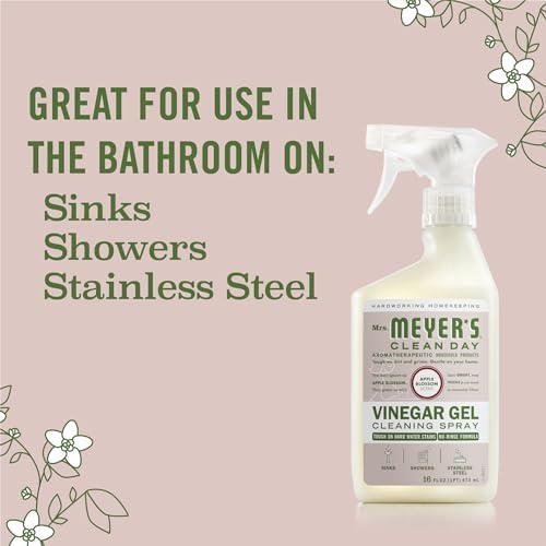 Mrs. Meyer’s Clean Day Vinegar Gel Cleaning Spray features a plant-derived, thickened vinegar—with our bright Apple Blossom scent —that cleans without needing to rinse. For cleaning sinks, showers, stainless steel, and all those other little do-it-yourself vinegar jobs, only much more pleasant! Try it and we’re sure you’ll love it as much as we do!