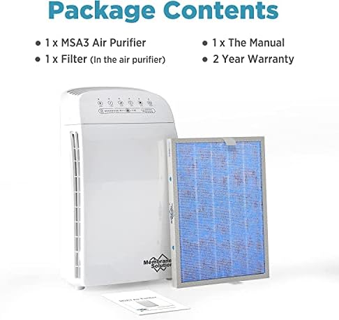 Efficiency Filtration: MSA3 Air Purifier uses H13 True HEPA PP electrostatic electret melt-blown filter. Filters out 99.97% of particles as small as 0.3 microns and air pollution PM 2.5 (particulate matter). Helps to relieve common allergies like sneezing, coughing, and irritated eyes.