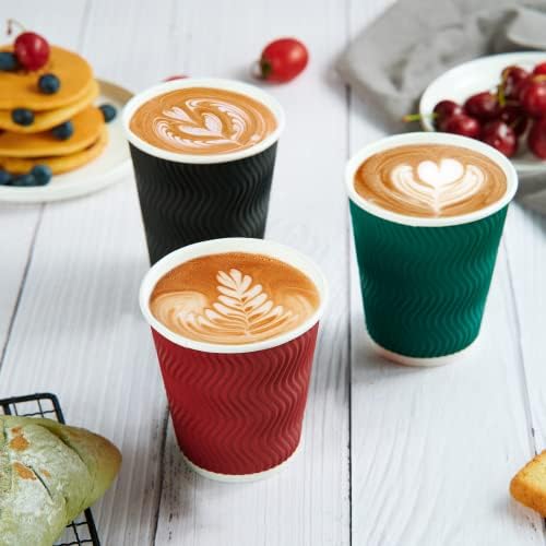【Bulk Pack for All Occasions】 : 120-pack insulated paper coffee cups with 3 colors (red, black, green) is a great deal. Classic and elegant design make these hot coffee cups versatile, perfect for daily or office use, as well as for business use in cafe shops or restaurants.