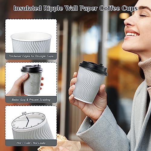 【Bulk Pack for All Occasions】 : 100Pcs insulated bulk paper coffee cups with lids and straws is a great deal. Classic and elegant design make these hot coffee cups versatile, perfect for daily or office use, as well as for business use in cafe shops or restaurants.