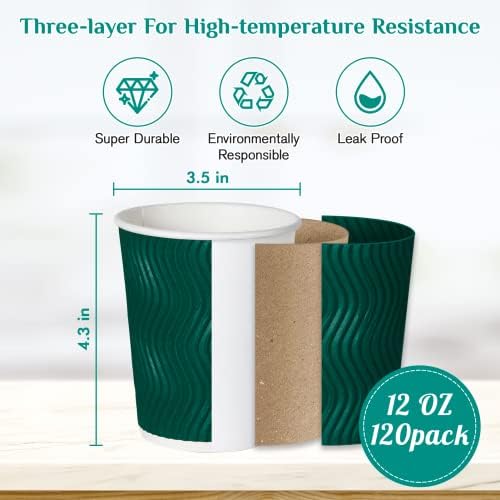 【Bulk Pack for All Occasions】 : 120-pack insulated paper coffee cups with 3 colors (red, black, green) is a great deal. Classic and elegant design make these hot coffee cups versatile, perfect for daily or office use, as well as for business use in cafe shops or restaurants.