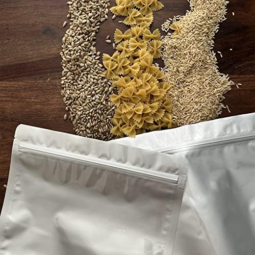 These 1-gallon food-grade resealable mylar bags come with heat sealable and oxygen absorbers, are made of durable Aluminum foil and BPA-free plastic lining, and are safe and practical packaging solutions for emergencies or long-term food storage. With them, you can effectively protect the food from light, air, dust, and moisture, maintaining food safety and extending storage time.