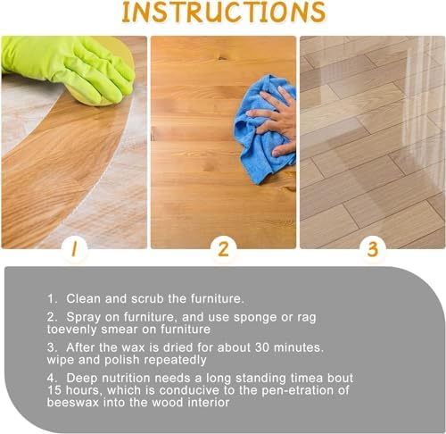 Natural Ingredients: Our Natural Micro Beeswax Spray effortlessly removes years of wax buildup and grime,Nourishes and enhances the beauty of your wood.