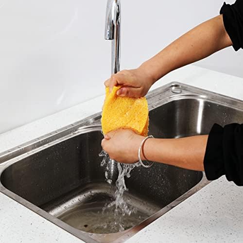 Material: natural cellulose spongeSize of each sponge: 15x10x5cm/5.9×3.9x2inQuantity: 1 piecesFeatures: non-scratch fiber, durable, ,no odorMultipurpose: Cleaning tableware, ovens, microwaves, sinks and other household cleaning.Note:When opening the package for the first time, you can put the sponge in water and squeeze it several times to restore its original shape more quickly.